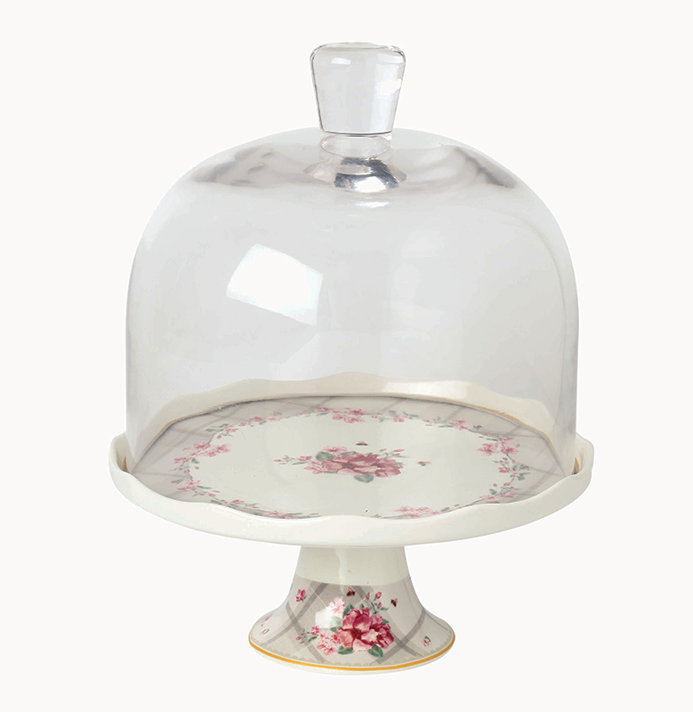 Εξαιρετικής ποιότητας πορσελάνη τουρτιέρα με γυάλινο καπάκι και πόδι Floral Paris Roses, σε πολυτελή συσκευασία δώρου.Κατάλληλη για το πλυντήριο πιάτων.
