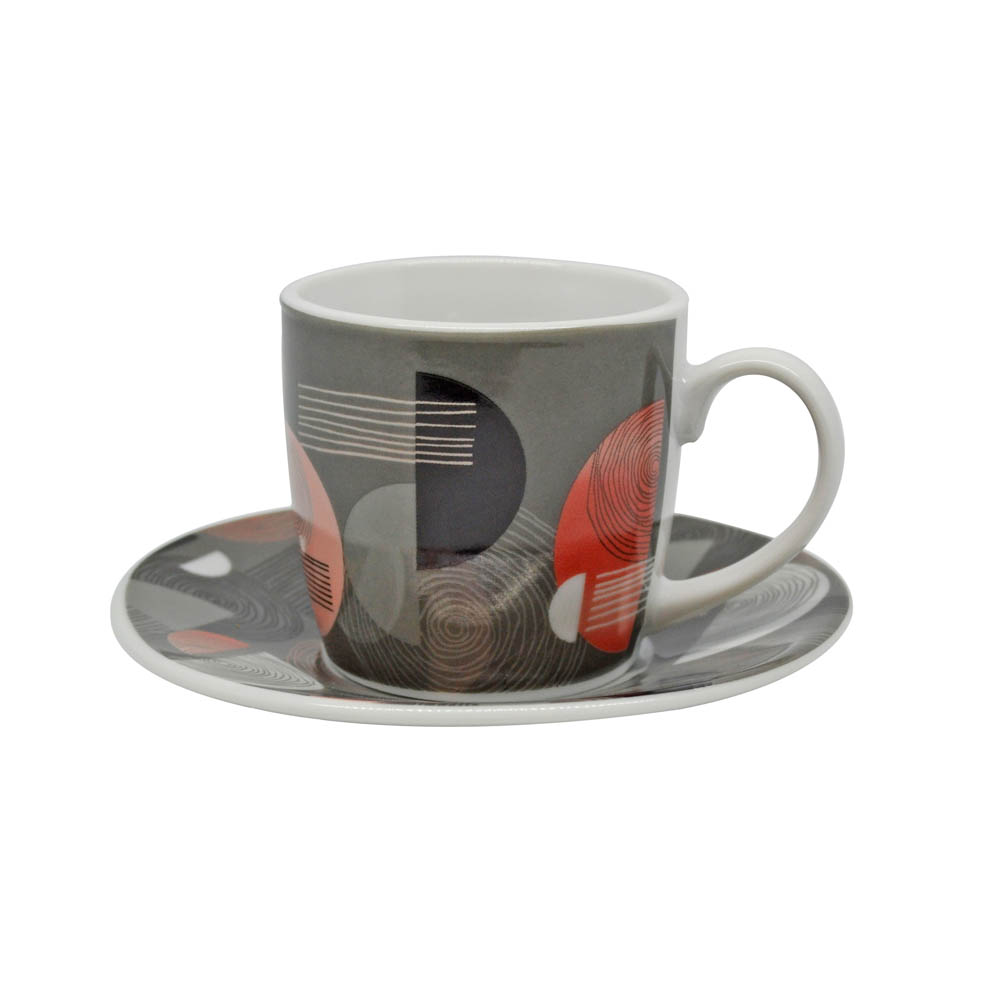 Σετ 6 τεμαχίων φλυτζάνια για καφέ με πιατάκια κατασκευασμένα από πορσελάνη, με σχέδιο ημικύκλια και σε συσκευασία δώρου. Σερβίρετε και απολαύστε τον αγαπημένο σας καφέ. Κατάλληλα για χρήση στο πλυντήριο πιάτων.