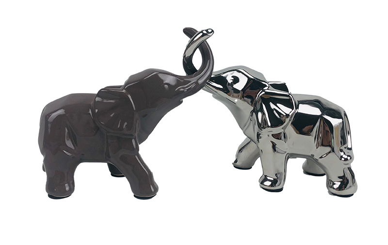 Διακοσμητικά Κεραμικά Ελεφαντάκια Αντικριστά Ασημί 10.5X6.5X25.5cm& 7X5.5X21cm