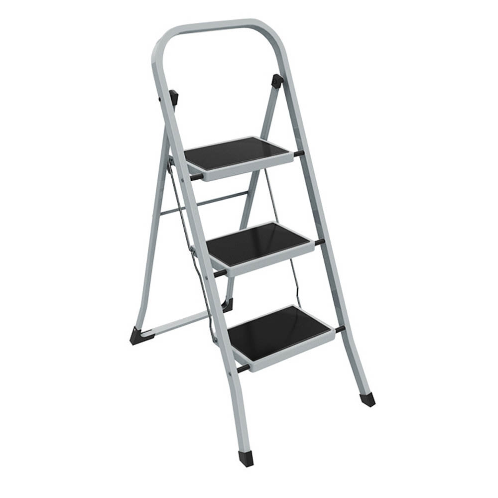 Σκάλακι μεταλλικό με τρία σκαλοπάτια σε μαύρο χρώμα και αντιολισθητική επίστρωση για έξτρα σταθερότητα. Διαθέτει ασφάλιση ανοίγματος, αντιολισθητικά πέλματα για ασφαλή τοποθέτηση,είναι αναδιπλούμενη για εύκολη αποθήκευση και ελαφριά για εύκολη μεταφορά.. Διάσταση κλειστό: 46,5x3x116 εκ. Διάσταση ανοιχτό: 46,5x71x105εκ. Διάσταση σκαλοπατιού: 30x20εκ.