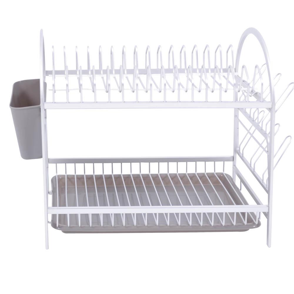 Διώροφη πιατοθήκη αλουμινίου με πλαστική θήκη για τα μαχαιροπίρουνα, ποτηροθήκες και πλαστικό δίσκο σε γκρι χρώμα.. Χρηστικά αντικείμενα για την κουζίνα σας, κομψά και μοντέρνα καθημερινής χρήσης σε λιτές γραμμές. Συνδυάστε τα με τα υπόλοιπα αντικείμενα της σειράς και ανανεώστε τον χώρο σας.