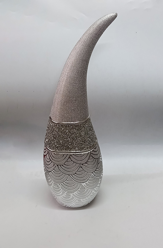 Κεραμικό Διακοσμητικό Ασημί Βάζο Φλόγα και Διακοσμητικά Στρας.