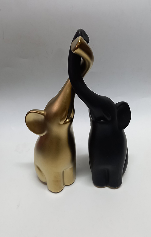 Σετ 2 τεμαχίων Κεραμικά Διακοσμητικά Ελεφαντάκια Σε Χρυσό/Μαύρο Ματ 10.5X6.5X25.5cm & 7X5.5X21cm.