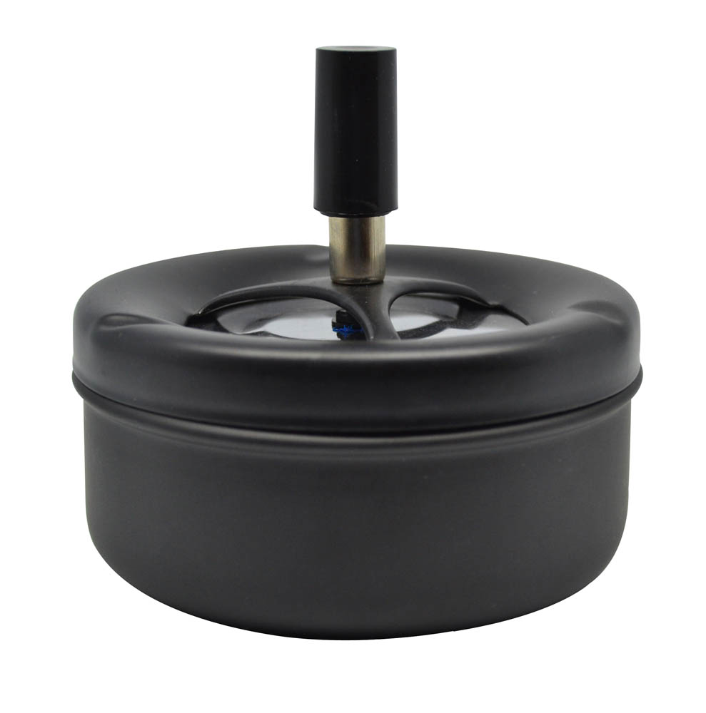 Τασάκι μεταλλικό αντιανεμικό με καπάκι, σε μαύρο ματ χρώμα