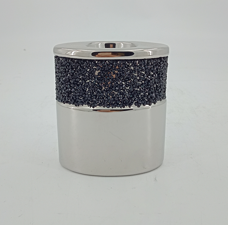 Διακοσμητικό Ασημί Κεραμικό Κηροπήγιο Με Μαύρα Στρας 10.4x6.5x11.5cm.