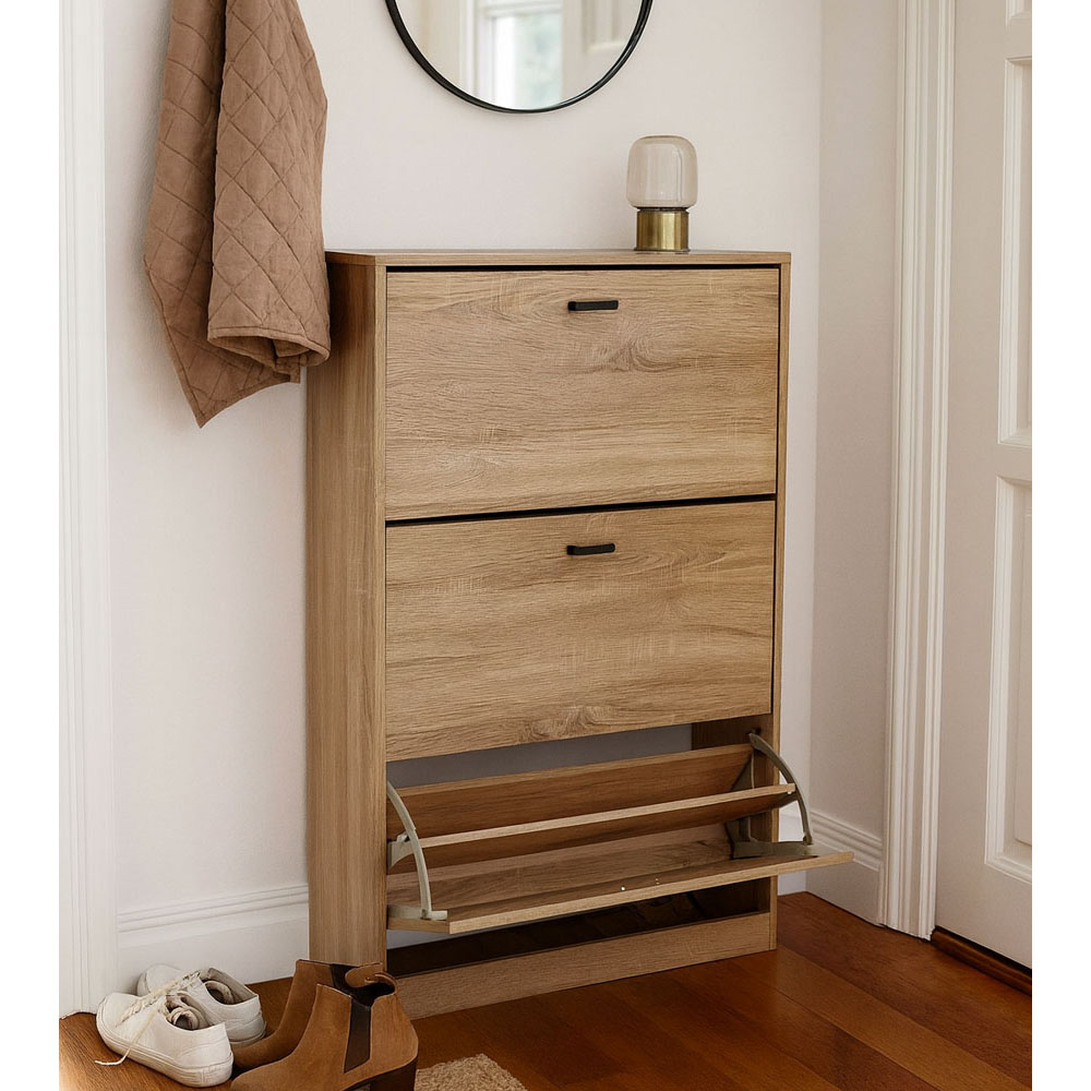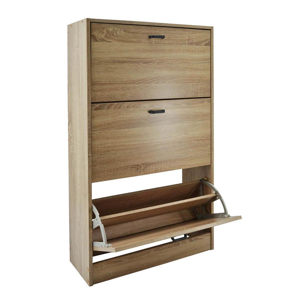 Ξύλινη με τρία διπλά ράφια. Παπουτσοθήκη ξύλινη υψηλής ποιότητας, ιδανική για να τακτοποιήσετε και να προστατέψετε τα παπούτσια σας. Διαθέτει τρία ντουλάπια με διπλό ράφι στο καθε ντουλάπι για μεγαλύτερη χωρητικότητα. Το εσωτερικό μέγεθος των ντουλαπιών είναι μήκος 58εκ πλάτος 30εκ και ύψος 31εκ. Στη συσκευασία περιέχονται οι οδηγίες συναρμολόγησης. Ξύλινα έπιπλα κομψού και μοντέρνου σχεδιασμού ιδανικά για κάθε χώρο. Αποτελούν πρακτική λύση για κάθε σπίτι καθώς ταιριάζουν σε κάθε στυλ διακόσμησης. Ανανεώστε το σαλόνι, το γραφείο ή το υπνοδωμάτιο εύκολα και οικονομικά. Επιλέξτε το χρώμα και το σχέδιο που ταιριάζει απόλυτα στον χώρο σας. Διάσταση Κιβωτίου 122x34,5x10.