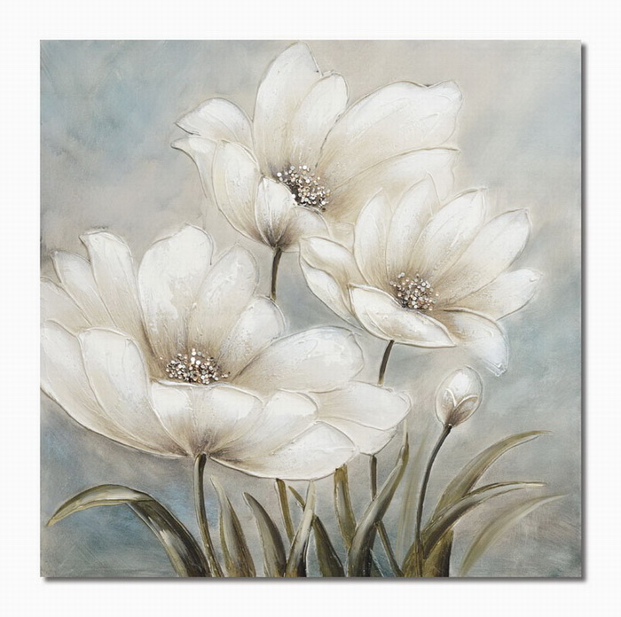 Πίνακας Σε Καμβά Λουλούδια Με Ασημί Λευκή Λεπτομέρεια 60x60x3cm.