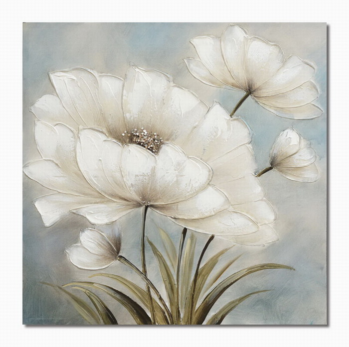 Πίνακας Σε Καμβά Λουλούδια Με Ασημί Λευκή Λεπτομέρεια 60x60x3cm