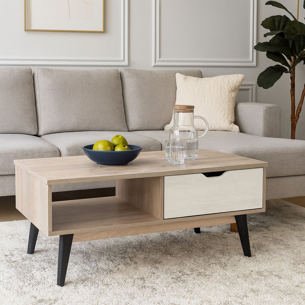Έπιπλο διαφόρων χρήσεων ξύλινο σε φυσικό χρώμα με άσπρο συρτάρι και κομψά πόδια σε μαύρο χρώμα. Είναι λειτουργικό με μοντέρνο σχεδιασμό και διαχρονικό στυλ. Στην συσκευασία περιλαμβάνονται οδηγίες συναρμολόγησης.. Ξύλινα έπιπλα κομψού και μοντέρνου σχεδιασμού ιδανικά για κάθε χώρο. Αποτελούν πρακτική λύση για κάθε σπίτι καθώς ταιριάζουν σε κάθε στυλ διακόσμησης. Ανανεώστε το σαλόνι, το γραφείο ή το υπνοδωμάτιο εύκολα και οικονομικά. Επιλέξτε το χρώμα και το σχέδιο που ταιριάζει απόλυτα στον χώρο σας. Διαστάσεις Κιβωτίου: 112x49x7εκ.