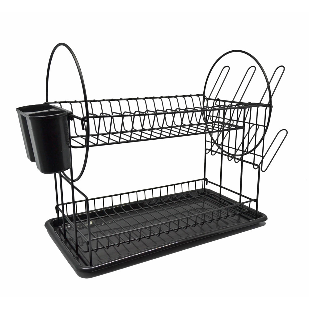 Πιατοθήκη διώροφη μεταλλική μαύρη, η οποία διαθέτει πλαστικό δίσκο και κουταλοθήκη σε μαύρο χρώμα. Το στόμιο αποστράγγισης εμποδίζει τη συγκέντρωση νερού μέσα στο δίσκο.Πλένεται και καθαρίζεται εύκολα.. Χρηστικά αντικείμενα για την κουζίνα σας, κομψά και μοντέρνα καθημερινής χρήσης σε λιτές γραμμές. Συνδυάστε τα με τα υπόλοιπα αντικείμενα της σειράς και ανανεώστε τον χώρο σας.