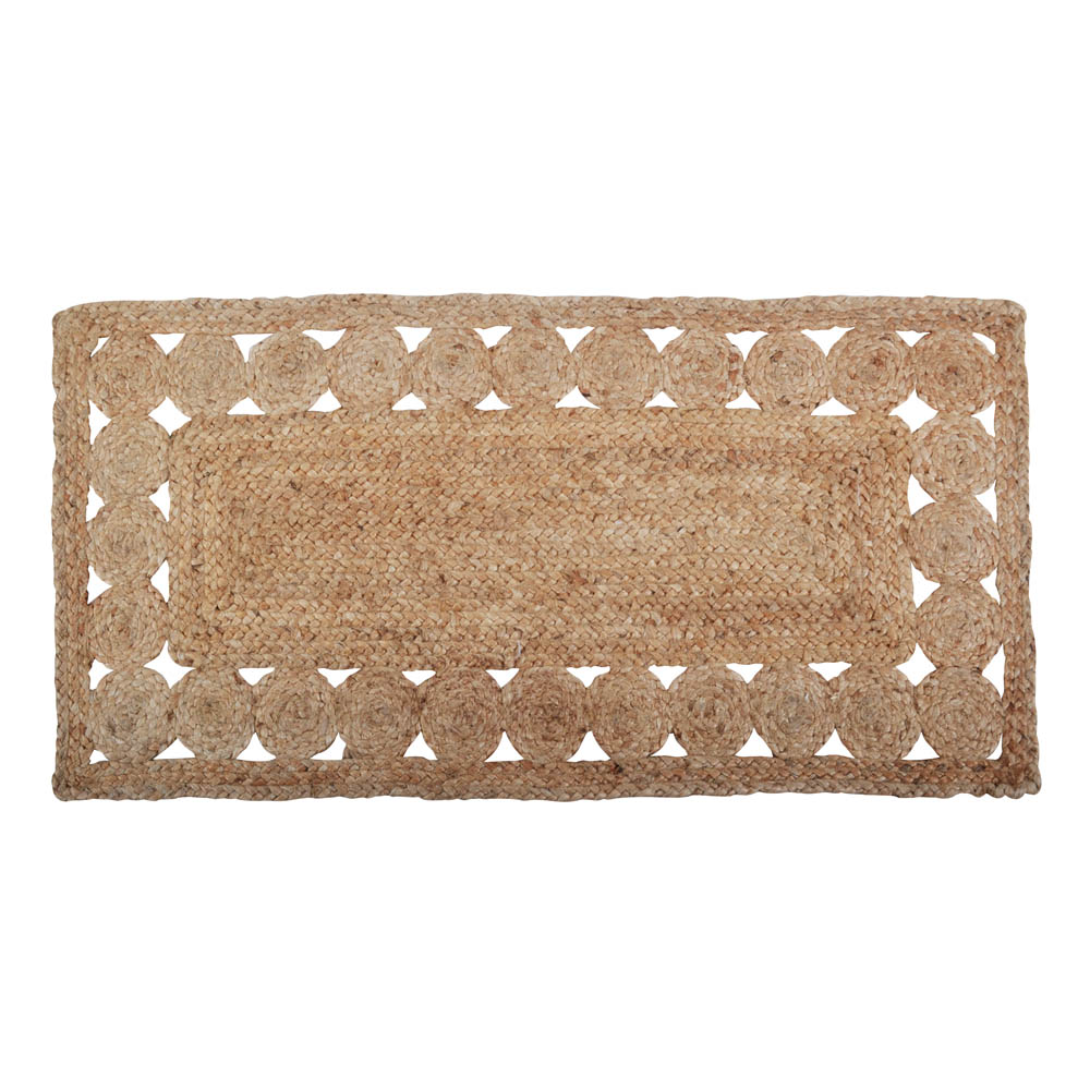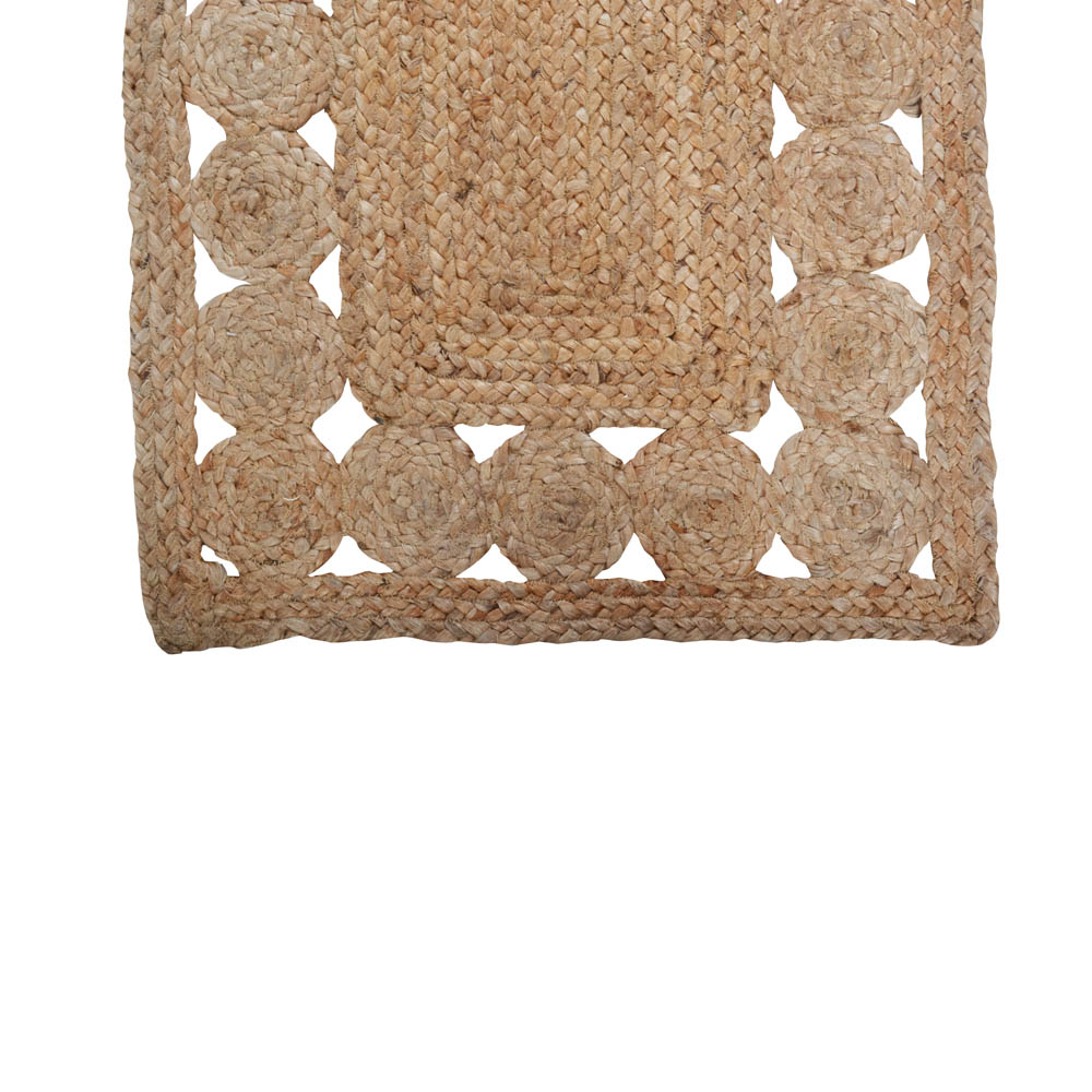 Χαλί διαδρόμου κατασκευασμένο από 100% γιούτα σε ουδέτερους τόνους,με διάτρητο σχέδιο,κατάλληλο για χρήση το καλοκαίρι αλλά κ για όλες τις εποχές του χρόνου.Ιδανικό για την κουζίνα ή το χολ.Είναι ιδιαίτερα πρακτικό χάρη στο μέγεθός κ την ανθεκτικότητά του. Για τη φροντίδα ενός χαλιού από γιούτα, συνιστάται καθάρισμα με ηλεκτρική σκούπα, τοπικό και στεγνό καθάρισμα. Στην περίπτωση που χυθεί υγρό, πρέπει να ταμπονάρετε το σημείο με στεγνό πανί και μετά να το στεγνώσετε με ήπια θερμό αέρα για να φύγει η υγρασία.
