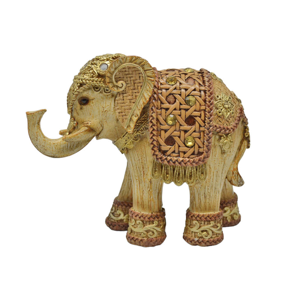 Διακοσμητικός ελέφαντας πολυεστερικός με εφέ ξύλου και χρυσές λεπτομέρειες σε έθνικ στυλ. Ξεχωριστά αντικείμενα για να στολίσετε το σπίτι σας ή να τα προσφέρετε σαν δώρο στα αγαπημένα σας πρόσωπα.
