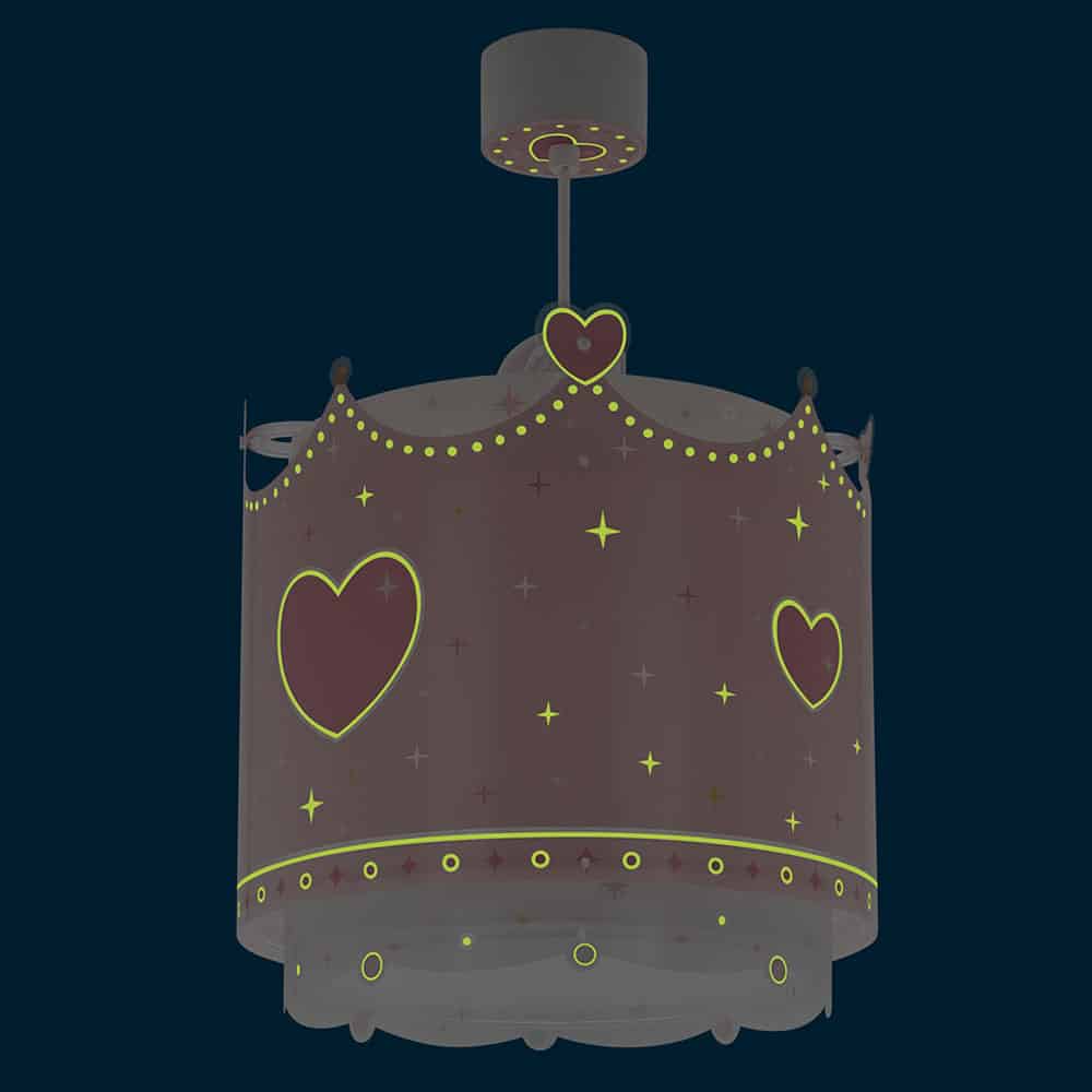 Καλωσορίστε το παιδί σας σε ένα δωμάτιο πλημμυρισμένο από μαγεία με αυτό το παιδικό φωτιστικό οροφής με θέμα τις βασίλισσες κατάλληλο για γενικό φωτισμό. Είναι διπλού τοιχώματος με διάφανο το εξωτερικό του και μαγικά φωσφορίζοντα μέρη στο σκοτάδι. Παρέχεται διαχυτής φωτός που προστατεύει τα μάτια των παιδιών μικρότερων ηλικιών αλλά και προσφέρει ομοιόμορφο φωτισμό σε κάθε παιδικό δωμάτιο. Το Little Queen παιδικό φωτιστικό οροφής συμπληρώνει τα υπόλοιπα φωτιστικά της συλλογής, τοποθετείται εύκολα και είναι κατασκευασμένο εξ ολοκλήρου στην Ευρώπη.