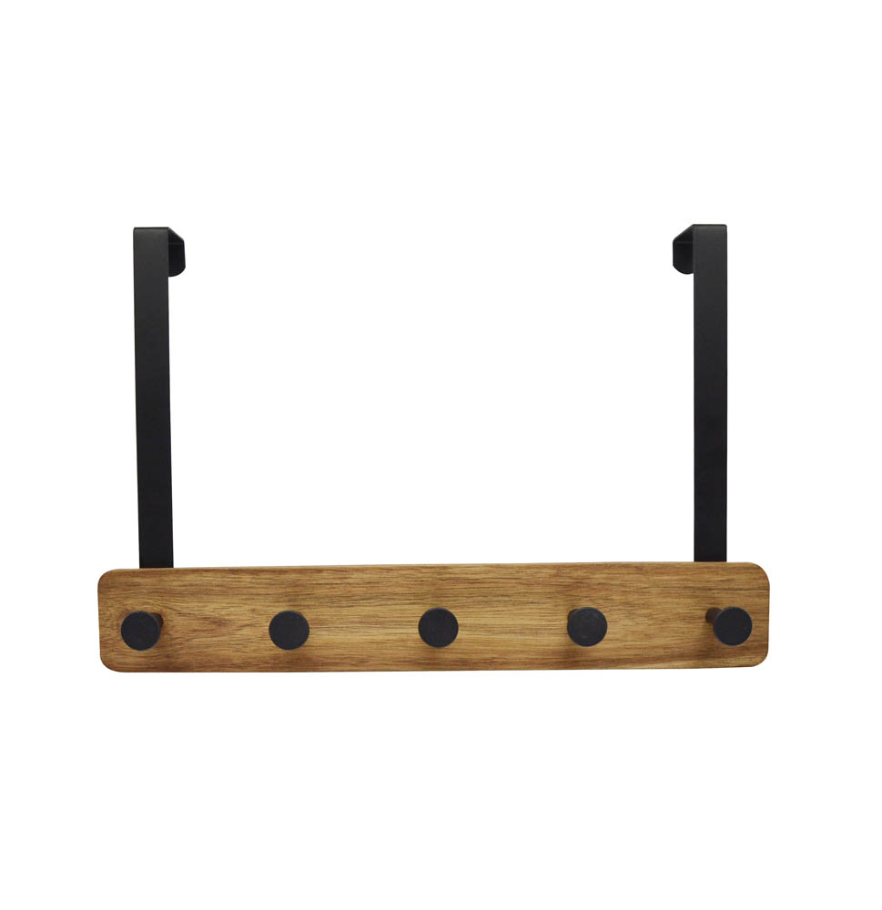 Κρεμάστρα πόρτας πέντε θέσεων μαύρη ματ μεταλλική με συνδυασμό από ξύλο ακακίας και μαύρα στρογγυλά κρεμαστράκια. Είναι πολύ πρακτική καθώς δεν χρειάζεται τρύπημα και μπορείτε να τη τοποθετήσετε ανάλογα με το που την χρειάζεστε.