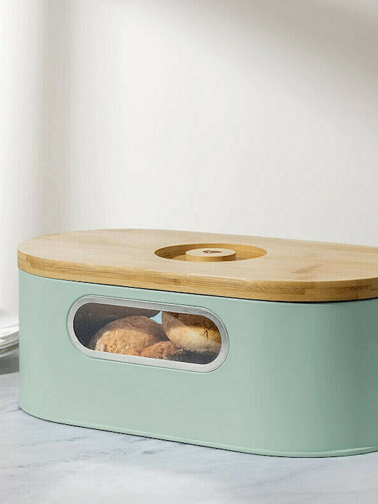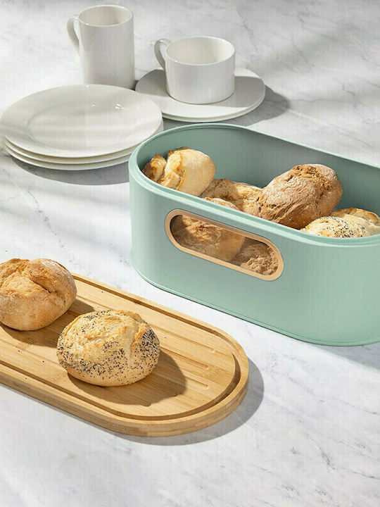 Navaris Ψωμιέρα με Καπάκι Μεταλλική Mint 33.5x19.5x13cm