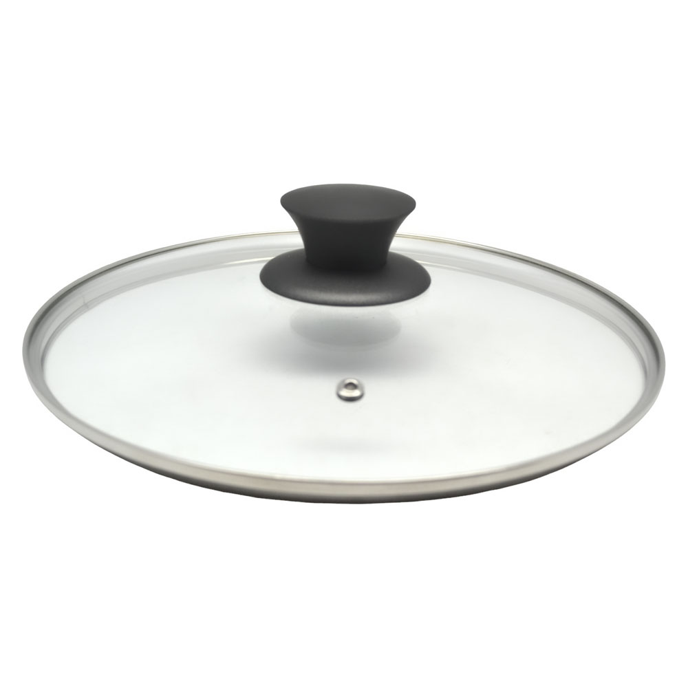 Γυάλινο πυράντοχο καπάκι, για σκευή 28εκ.,το οποίο περιβάλλεται από ανοξείδωτο στεφάνι. Η λαβή του είναι από αντιολισθητικό βακελίτη σε μαύρο χρώμα προσφέροντας άνεση κατά τη χρήση και αντιθερμική προστασία. Είναι κατάλληλο για το πλυντήριο πιάτων.