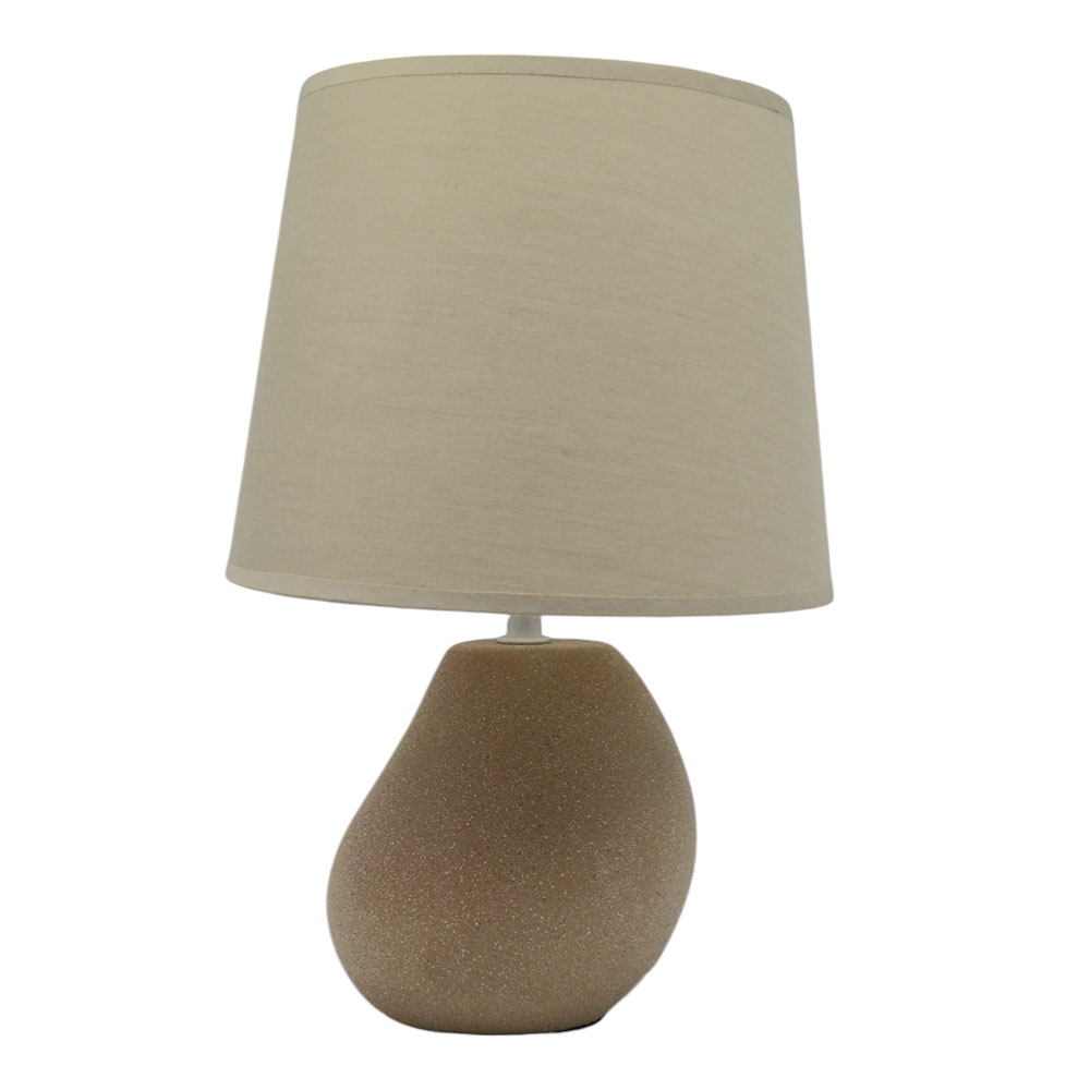 Πορτατίφ κεραμικό με μοντέρνο σχεδιασμό, σε γήινους τόνους με σαγρέ υφή και υφασμάτινο μπεζ καπέλο. Κατάλληλο για λαμπτήρα Ε14 ΜΑΧ 40W, ο οποίος δεν περιλαμβάνεται στη συσκευασία.