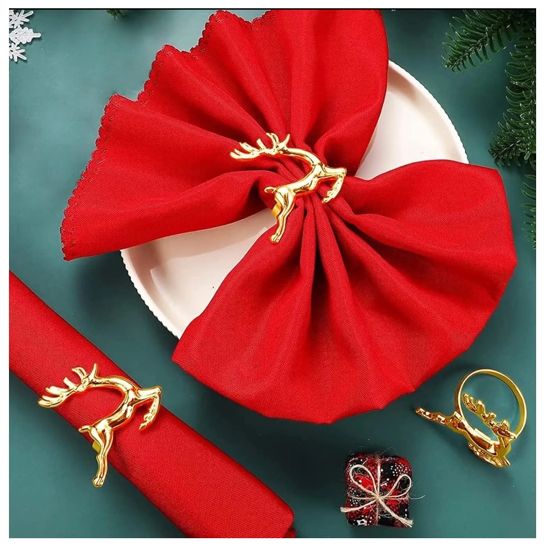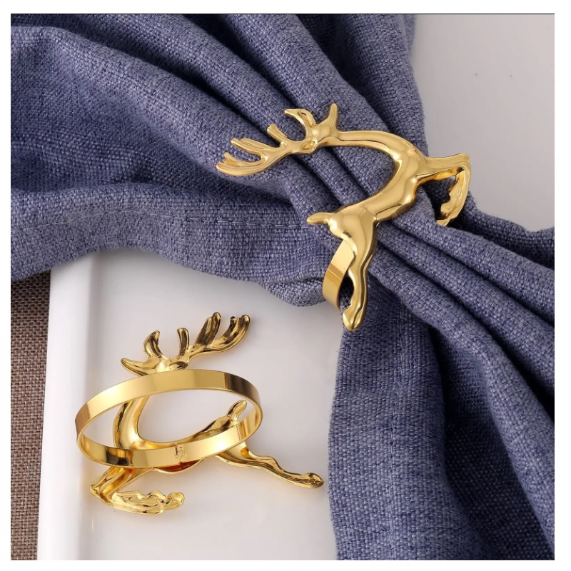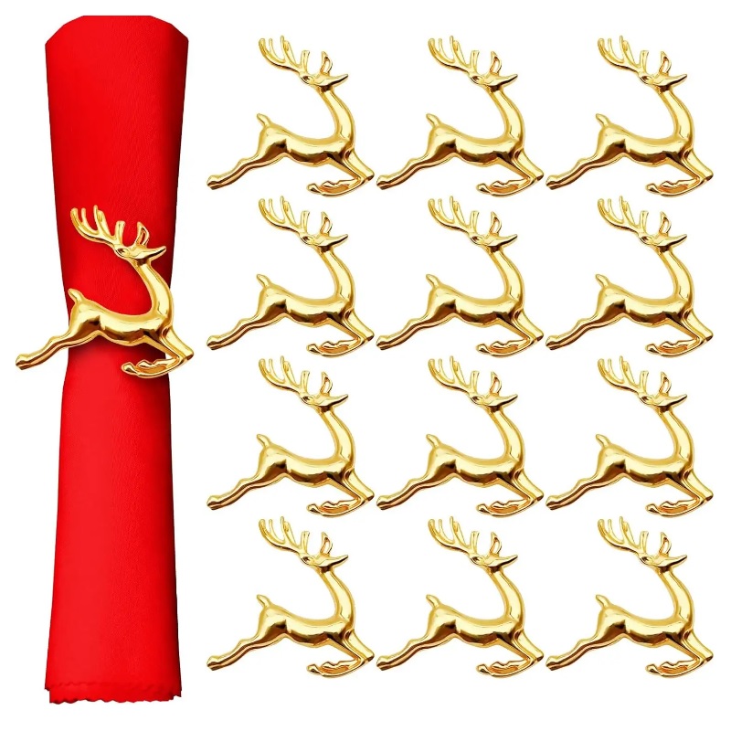 ΣΕΤ 12 ΤΕΜ- Δαχτυλίδια Πετσέτας Μεταλλικά Χρυσά Τάρανδος" Maripel 10119 Set 12