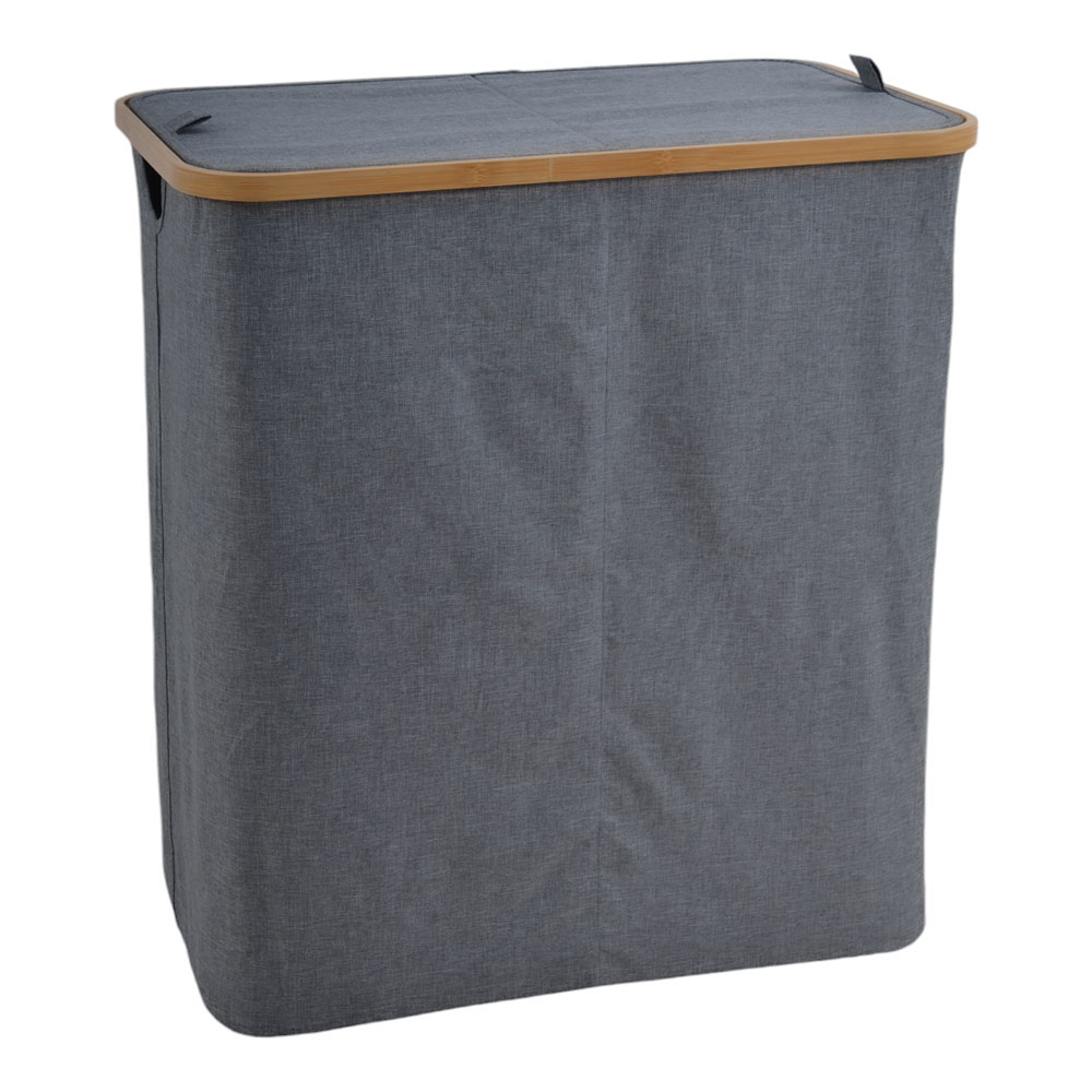 Καλάθι απλύτων από ανθεκτικό πολυεστερικό ύφασμα 600D και σκελετό μπαμπού, που εξασφαλίζει σταθερότητα και αντοχή στη χρήση. Με χωρητικότητα 105 λίτρων και δύο ξεχωριστές θήκες με καπάκια, προσφέρει ιδανική λύση για την ταξινόμηση των ρούχων σας.. Είναι αναδιπλούμενο για εύκολη αποθήκευση όταν δεν χρησιμοποιείται.