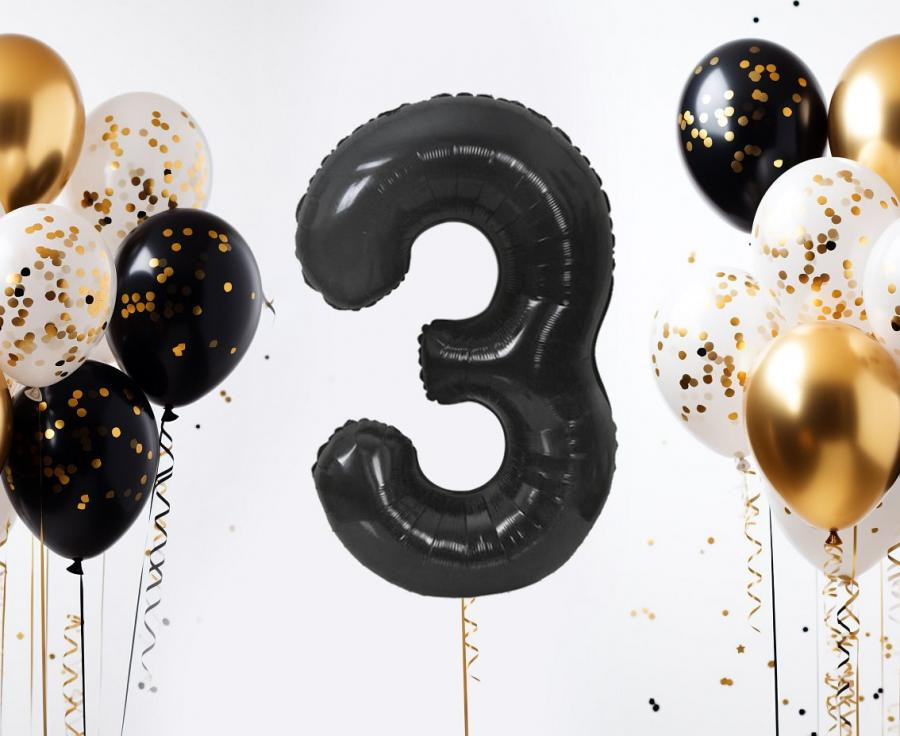 Number B&C Matt Black Black Number 3 Foil Balloon 85 cm