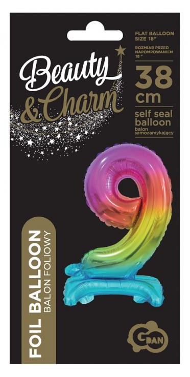Rainbow colorful mini 9 foil balloon with base 38 cm