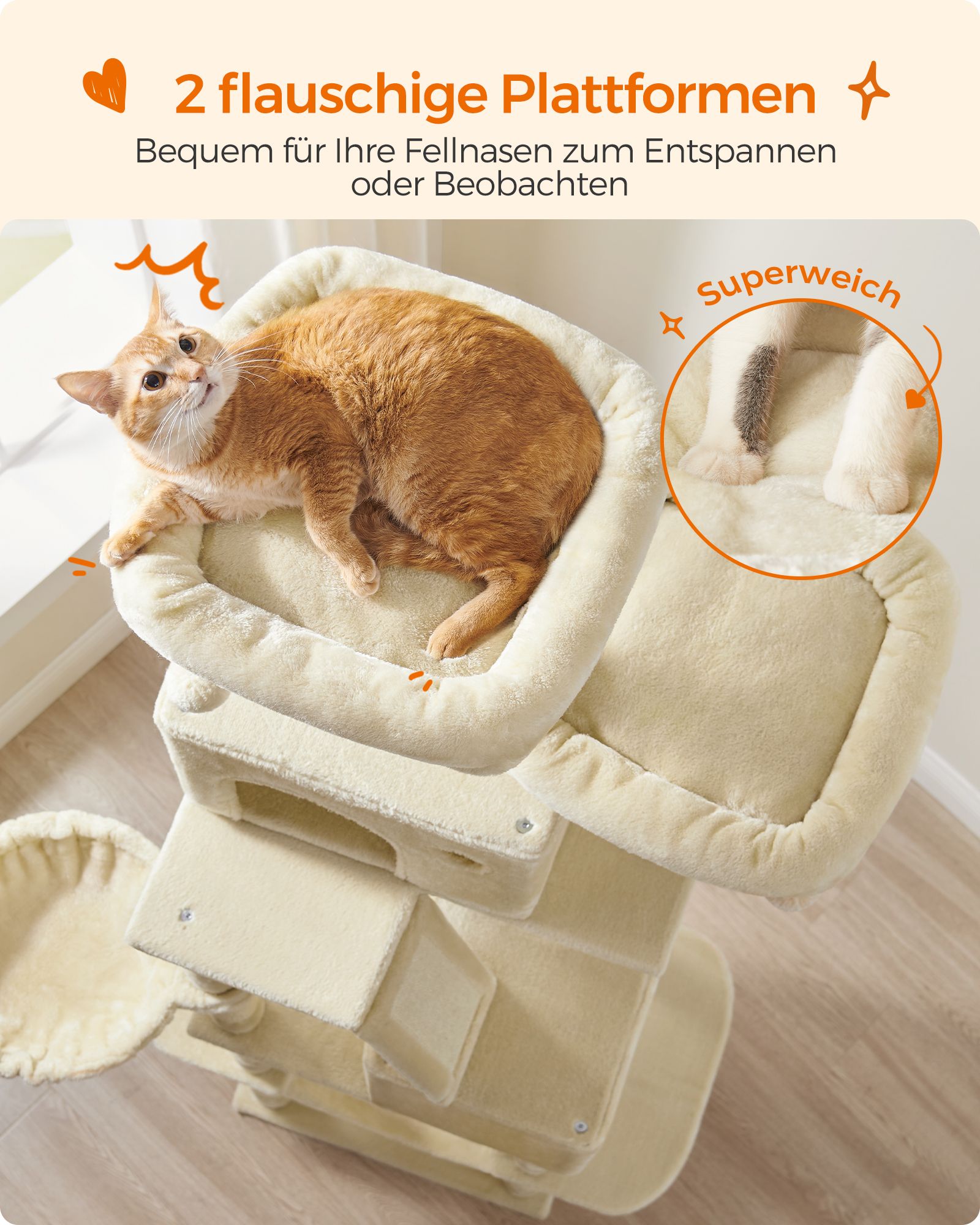 Easy to assemble: Thanks to the simple structure, clear instructions and marked parts, assembling this cat tower is child's play
