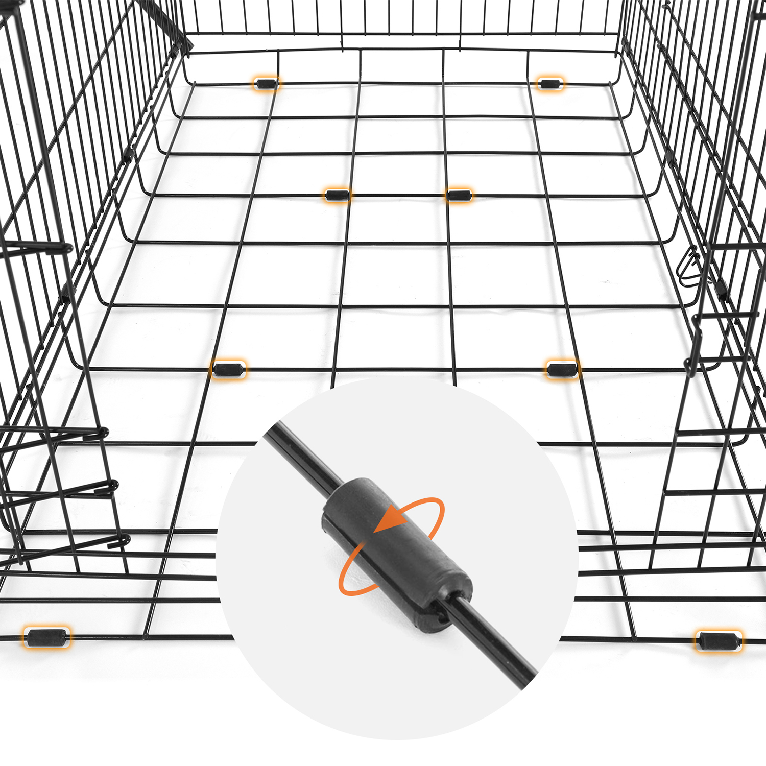 PROTECTION FOR YOUR FLOOR: To protect your floor from scratches, this cage is equipped with 8 plastic floor protectors. The removable plastic tray also protects your hardwood if your dog has an accident and allows for easy cleaning