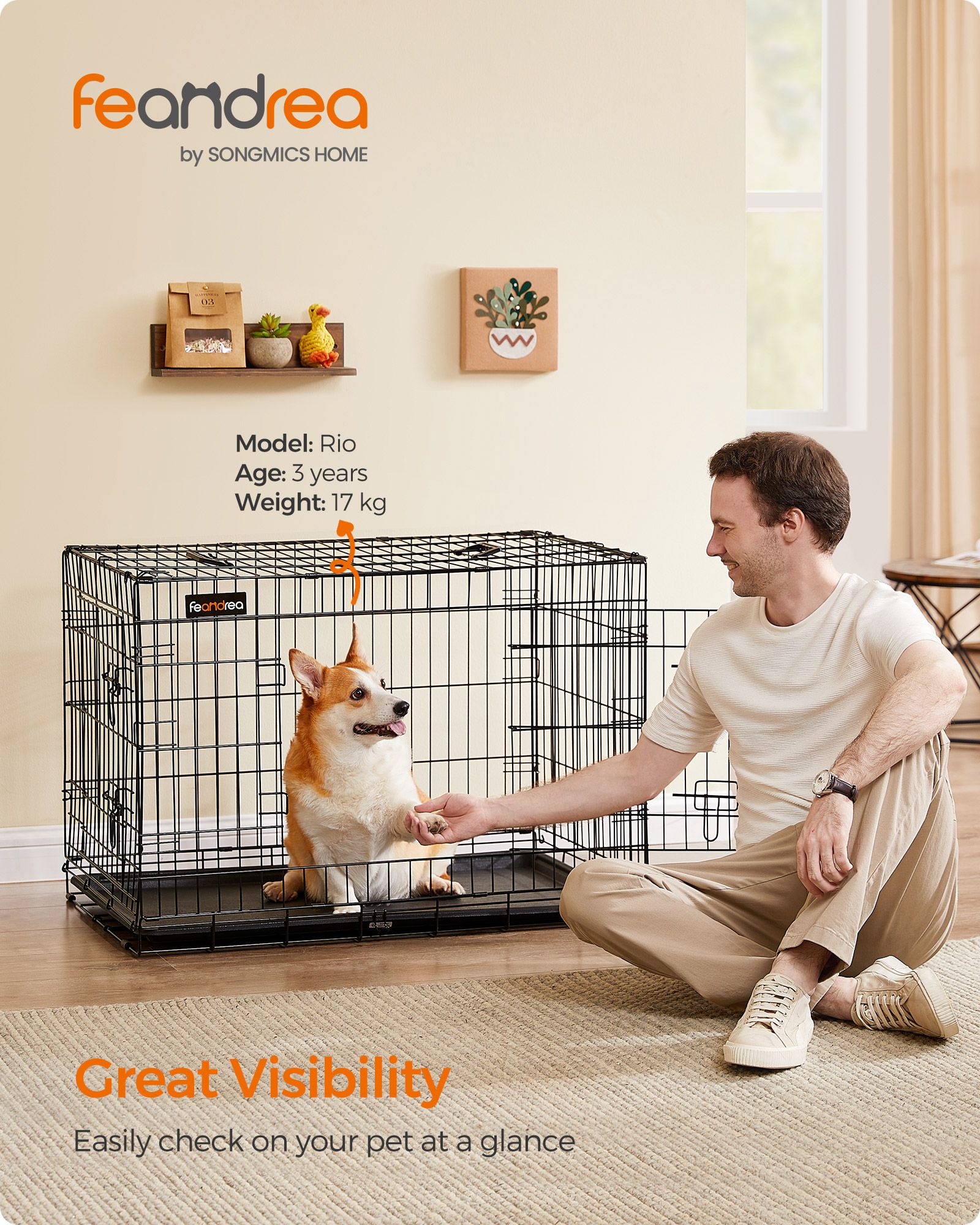 Safe and Comfortable: Crafted of durable, strong metal wire and finished with a smooth, rust-resistant surface with no sharp edges, this large dog crate provides a safe and comfortable space for your dog