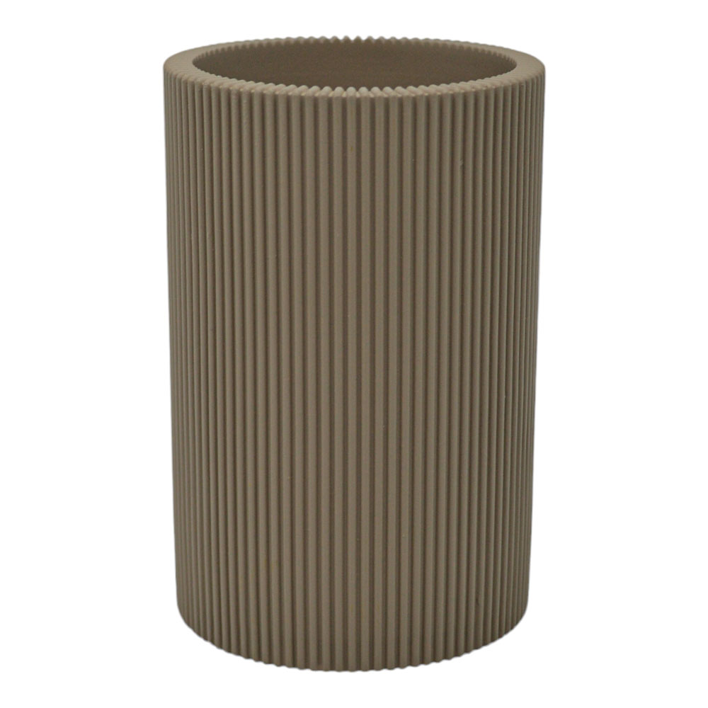 Ποτηροθήκη για οδοντόβουρτσες πολυεστερική με μοντέρνο σχεδιασμό και κομψό taupe ματ φινίρισμα. Διαθέτει ανάγλυφη υφή με ρίγες που προσδίδουν στυλ και προσφέρουν σταθερό κράτημα.