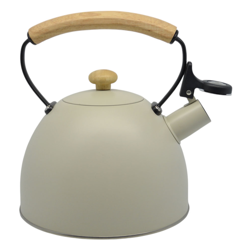 Βραστήρας νερού - τσαγερό κατασκευασμένο από ανοξείδωτο ατσάλι βαμμένο με ηλεκτροστατική βαφή, με ξύλινη λαβή και καπάκι. Διαθέτει επαγωγικό πάτο, ηχητική ειδοποίηση σφυρίγματος και θερμοανθεκτική λαβή που σας βοηθά να το μεταφέρετε με άνεση και ασφάλεια.. Κατάλληλο για όλες τις εστίες: Κεραμικές, Ηλεκτρικές, Αλογόνου, Αερίου και Επαγωγικές. Διαστάσεις: Ύψος σώματος 12εκ, με λαβή 22εκ, διάμετρος βάσης 19εκ.