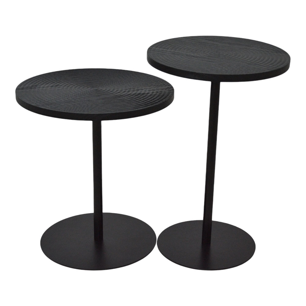 Στρογγυλό τραπεζάκι με ξύλινη επιφάνεια που αναδεικνύεται από τα φυσικά νερά του ξύλου και μαύρη ματ μεταλλική βάση για σταθερότητα. Ο διαχρονικός του σχεδιασμός το καθιστά ιδανικό για κάθε χώρο, συνδυάζοντας λειτουργικότητα και στυλ.