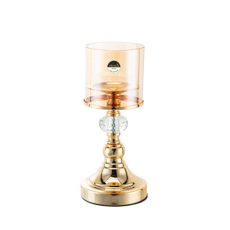 Μεταλλικό Γυάλινο Χρυσό Κηροπήγιο 9.7 x11.5x26cm