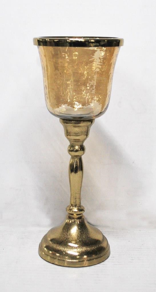 Γυάλινο Μελί Κηροπήγιο Με Μεταλλική Αντικέ Χρυσή Βάση 11.5x11.5x30.5cm.