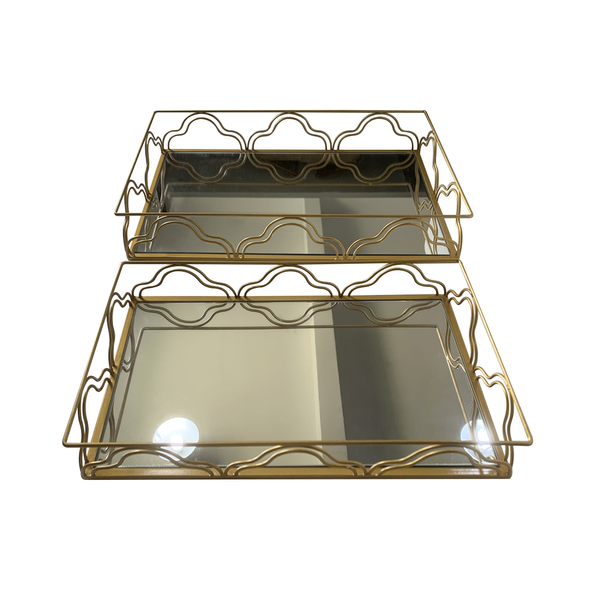 Σετ Των 2 Δίσκος Μεταλλικός Χρυσός Αλυσίδα Με Καθρέπτη.40.5x25.5x6.5cm & 35.5x20.5x5.5cm