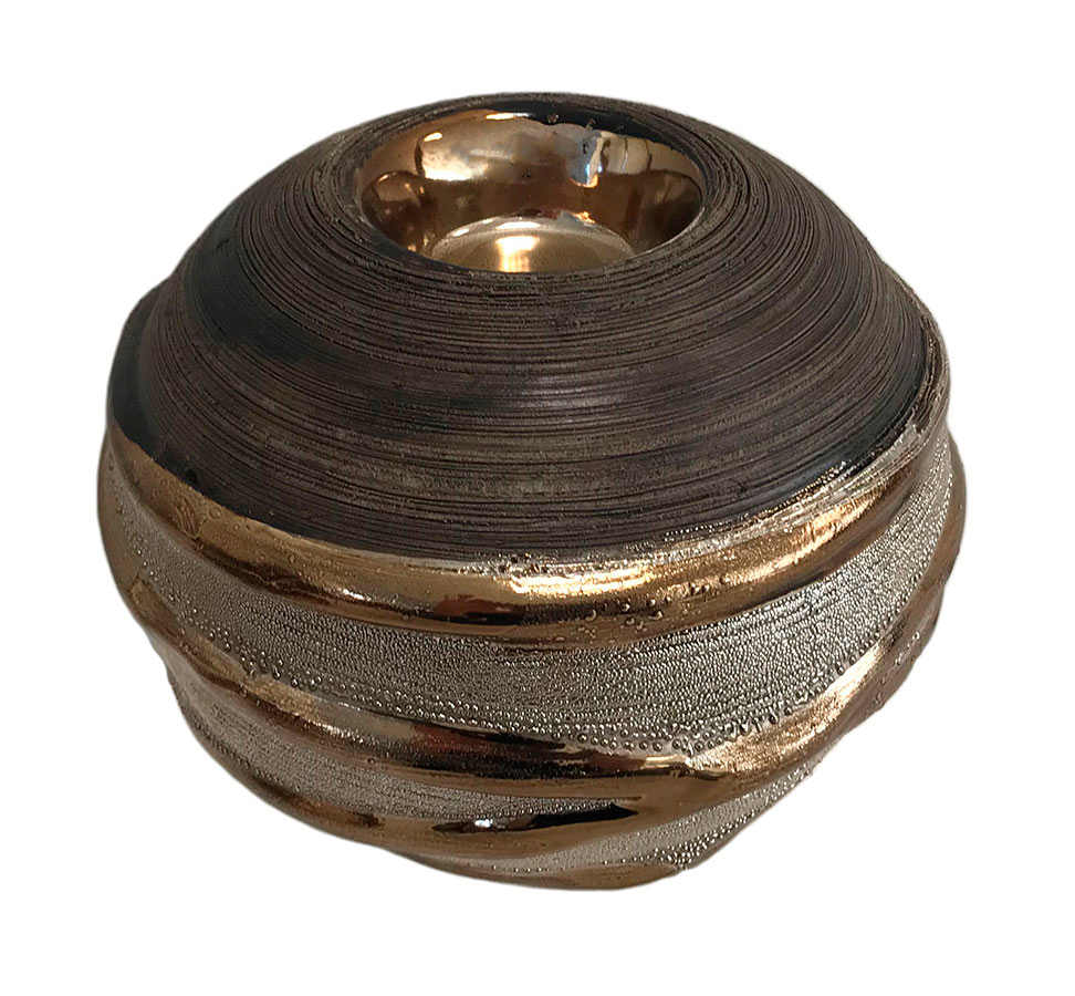 Κηροπήγιο κεραμικό για ρεσώ στρογγυλό, σε καφέ-χρυσό χρώμα. Διαθέσιμο σε 2 διαστάσεις 10x15.5εκ. και 8x11εκ.