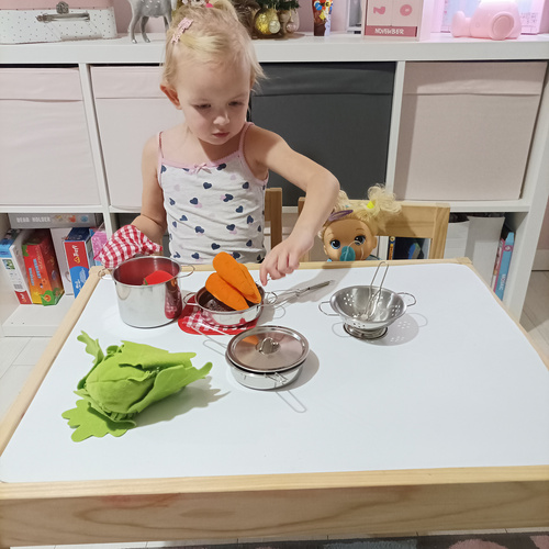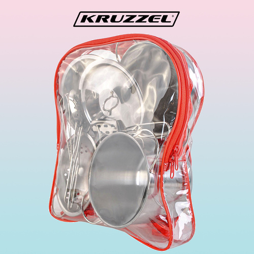 METAL POTS SET FOR CHILDREN 13 ELEMENTS – the set includes 13 elements, i.e. everything a little chef needs : 2 pots, a frying pan, a colander, a lid (fits any pot), a set of various types of spoons, a backpack and a fabric pad with a glove . PORTABLE - the set is light and handy. It is in a transparent...