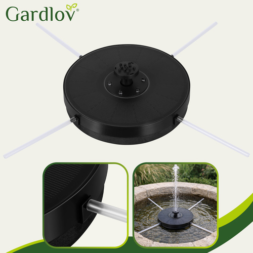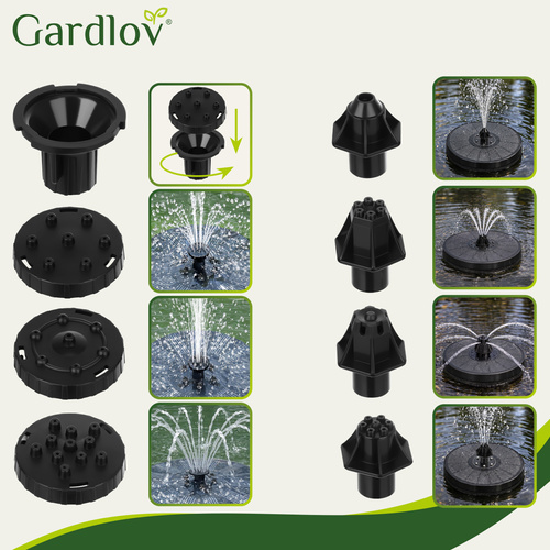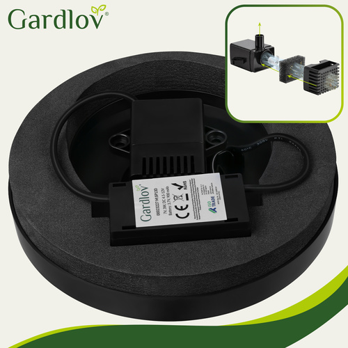 FLOATING SOLAR FOUNTAIN FOR POOL SOLAR – the solar panel and battery supply power directly from solar energy. This allows for maintenance-free use of the device . The lighting turns on automatically after dark. The lamp does not require an additional source of energy, such a solution is economical and economical . UP TO 7 INTERCHANGEABLE TIPS – the fountain has 7 interchangeable pump tips, which allow you to choose the shape of the water released upwards. So you can change the shape of the fountain depending on your own preferences . 2 WORKING MODES – maintenance-free solar lamp has 2 operating modes. Day mode, in which only the fountain works, and night mode, where there is also fancy RGB LED lighting . This adds charm to your pool or pond. HIGH WATER FLOW AND HIGH WATER CASCADE - the fountain has a high water flow, up to 180 liters per hour. The water cascade reaches a height of up to 60 cm on sunny days. And less sunny days it can be lower. SPECIFICATION - manufacturer: Iso trade; brand: GARDLOV; colour: black; number of diodes 6; RGB LED light; solar plate: 7V and 3W; water pump output: DC 4.5-12V; twilight sensor: yes; maximum water flow: 180l/h; maximum spray height: 30 - 60 cm; battery capacity: 3.7 V/900 mAh; dimensions: 16 cm x 4 cm; weight: 340 g; weight in packaging: 434 g.