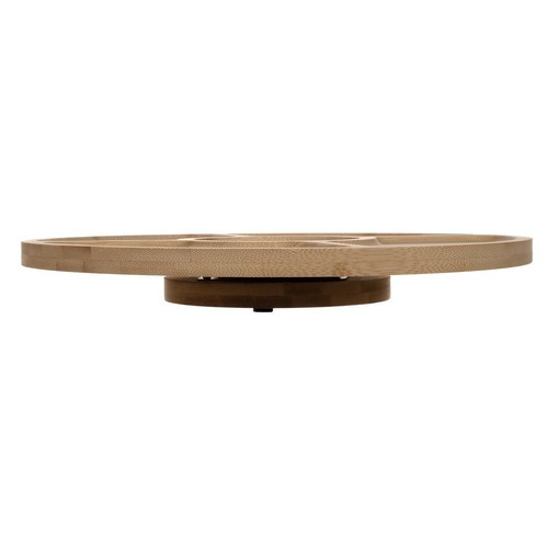 Board Specifications: number of places: 5 maximum load: 5 kg rotating mechanism on high-quality ball bearing non-slip base easy to clean enough possibility of natural impregnation with edible oil perfect for serving anti-slip pads moisture resistant does not absorb odors it doesn't take up much space easy to keep clean antibacterial safe for health does not discolour does not deform appropriate hardness RUHHY brand dimensions: 33 x 4 cm weight: 0.948 kg Weight in package: 1.146 kg material: bamboo Included in the set: serving board brown shipping carton