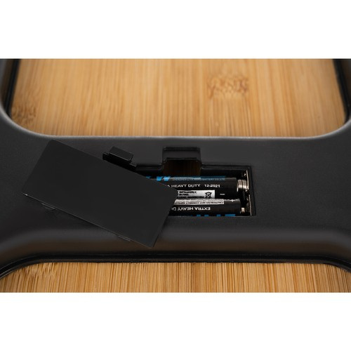 material: bamboo, others: PP + PVC weight unit: kg and lb minimum weight 0.002 kg maximum user weight: 180 kg display: LCD automatic shutdown: after 8 seconds battery charge indicator ambient temperature measurement power supply: 2 x AAA battery dimensions: 28 x 28 x 3 cm weight: 0.856 kg weight in package: 0.967 kg