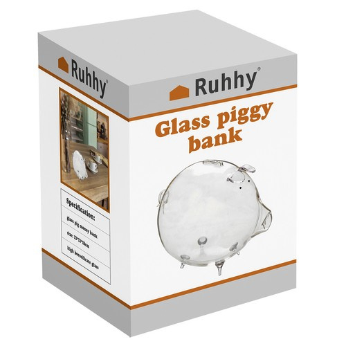 TRANSPARENT GLASS PIGGY BANK LEARNING TO SAVE - The piggy bank is an excellent way to learn how to save money, for both children and adults. It helps shape healthy financial habits and teaches patience. GLASS / TRANSPARENT - in a transparent piggy bank you can see the amount of money. This can help control expenses and prevent waste. Putting money into a piggy bank means saving until the bank breaks . AS A GIFT - a glass piggy bank in the shape of a pig can be a perfect gift or souvenir, especially for children. This is a practical gift that teaches saving and respect for the value of money . INTERIOR DESIGN DIVERSIFICATION - Piggy banks are not only practical, but also decorative. They can diversify the interior design and add charm to the rooms. SPECIFICATION - material: glass; colour: transparent; dimensions: 12.5 x 18.5 x 12 cm; weight: 189 g; weight in packaging: 321 g.