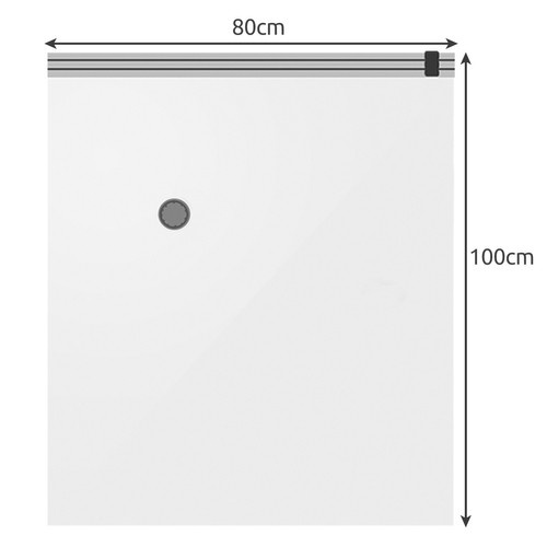 LARGE VACUUM BAG 80 x 100 cm SPACE SAVING - just pack the items into a bag. Vacuum bag after sucking out the air with a regular vacuum cleaner, its volume is reduced by up to 80% . It allows you to save a lot of space. You can fit e.g. 4 quilts in the bag. VERY GOOD SECURITY - the stored items are perfectly protected against dust, dirt, water, moisture or moths. Everything you put in the bag can be stored in the basement, attic or garage, and clothes will not be damaged or smell . Additionally, the bag has a milky color, which protects your things from the eyes of unauthorized persons. UNIVERSAL USE - perfect when moving, but also ideal for storing seasonal clothes or bedding. It is perfect for traveling when there is little space in your suitcase but you need a lot of clothes. REUSABLE - the bag can be used multiple times. It will not lose its properties after use. After taking them out of the bag, the clothes are still fresh and fragrant! SPECIFICATION - color: white / milky; material: PA, PE, HDPE, LDPE; plug diameter: 35mm; dimensions: 80 x 100 cm; weight: 0.151 kg; weight in packaging: 0.166 kg.