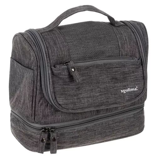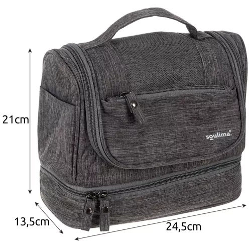 SPACIOUS TRAVEL COSMETIC BAG DESTINY - a cosmetic bag is a travel bag for essential skin and hair care cosmetics that come in handy when traveling. The hanging cosmetic bag will be useful not only for storing cosmetics at home, but also during holidays, business trips, camping or bivouac. PACKABLE + THERMAL POCKET - eleven pockets provide space for storing and organizing cosmetics and accessories, making it easier to stay organized and find the items you need quickly. Additionally, the cosmetic bag has a separate thermal pocket on the bottom. HOOK + WATERPROOF - the hanger placed inside is used to hang an open cosmetic bag. This is a particularly useful solution when traveling. After hanging, all cosmetics are within reach! Additionally, the material from which the cosmetic bag is made is waterproof. This is especially important for men who take the entire cosmetic bag to the shower. ZIPPER + HANDLE – the cosmetic bag is fastened with a zipper, which allows for quick and safe opening and closing. Additionally, it has a handle on which you can hang the cosmetic bag or put it on your hand. SPECIFICATION - color: gray; ; material: polyester, PVC, PEVA, PP, PE, iron, PET; waterproof: yes; dimensions: 25 x 20 x 14.5 cm; weight: 297 g; weight in packaging: 311 g.