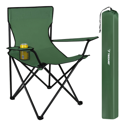 FOLDING FISHING CHAIR WITH COVER COMFORTABLE – adjustable armrests and even a special place for a cup will make you feel comfortable, like in your own home. The ergonomic design of the chair means that even after many hours of sitting you will feel great . Additionally, there are 2 holes in the front of the chair, into which we can drive pegs (not included), which will allow for even greater comfort of use without the risk of the chair sliding. FOLDABLE – the chair can be folded and unfolded quickly and easily. When folded, it can be stored and transported in a convenient case . The convenient carrying handle will make you want to take it with you on every trip. SOLID AND DURABLE MATERIALS – the chair is exceptionally stable, its frame is made of durable tubes and the seat is made of reinforced material. All these features make the chair withstand loads of up to 100 kg – also People with a more massive build can comfortably rest on it without worrying that the chair will get damaged. UNIVERSAL - despite its name, the fishing chair is not only perfect for fishing. It will also be perfect as a camping chair, beach chair or even a balcony chair . The fishing chair is not heavy (it weighs only about 2 kg) - we can also take it with us on a picnic or trip and it will not additionally weigh down our luggage. SPECIFICATION – colour: green; material: frame: iron + PP, cover: 600D oxford fabric + EPE foam + PVC + PU; dimensions: 80 x 44 x 80 cm; maximum load: 100 kg; weight: 1.089 kg; weight in packaging: 2.015 kg.