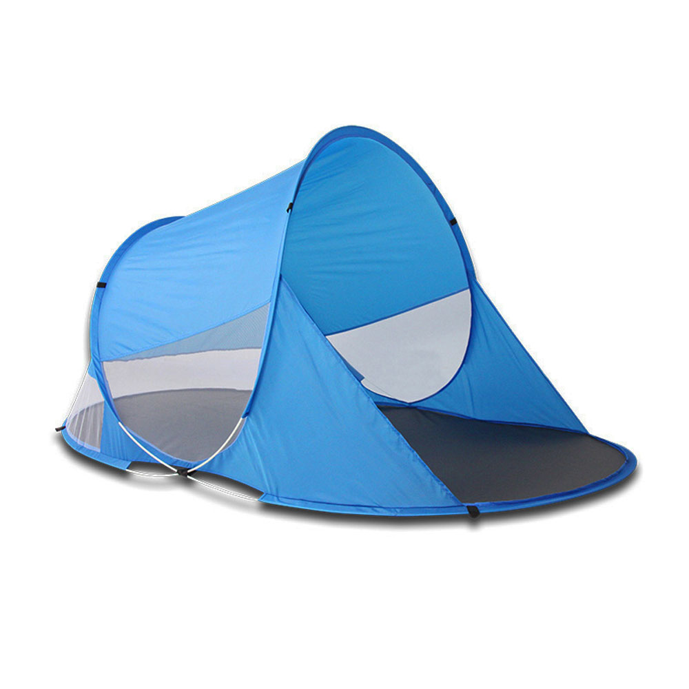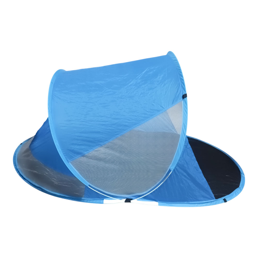 Σκηνή παραλίας pop up που ανοίγει αυτόματα, με πλευρικά παράθυρα από διάτρητο ύφασμα αερισμού. Διαθέτει οροφή από πολυεστερικό ύφασμα 170T με επικάλυψη PA, ενισχυμένο σκελετό από fiber glass πάχους 5mm και πρακτική τσάντα μεταφοράς για εύκολη αποθήκευση.