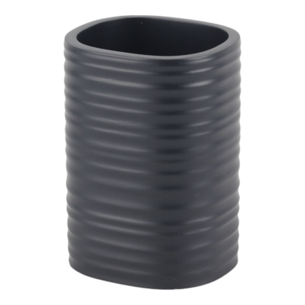 Ποτηροθήκη για οδοντόβουρτσες πολυεστερική, σε ανθρακί χρώμα με ματ φινίρισμα και ανάγλυφη ριγέ υφή. Αξεσουάρ μπάνιου εξαιρετικής ποιότητας με μοντέρνο και κομψό σχεδιασμό. Συνδυάστε τα ιδανικά με αντικείμενα της υπόλοιπης σειράς.