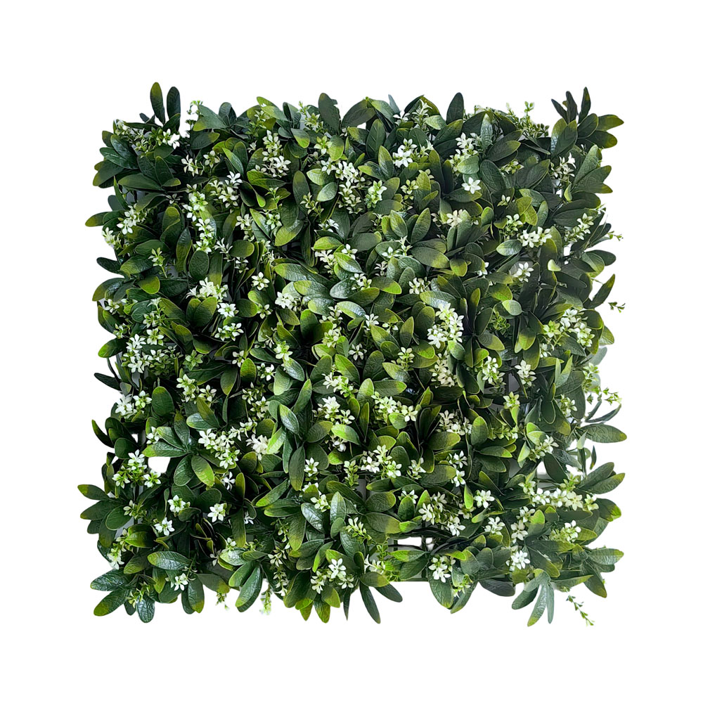 Διακοσμητικό πάνελ φυλλωσιάς από ανθεκτικό πλαστικό με ενσωματωμένη UV προστασία, ιδανικό για χρήση τόσο σε εσωτερικούς όσο και σε εξωτερικούς χώρους. Προσφέρει φυσική εμφάνιση και κάλυψη για τοίχους, κάγκελα ή διαχωριστικά..