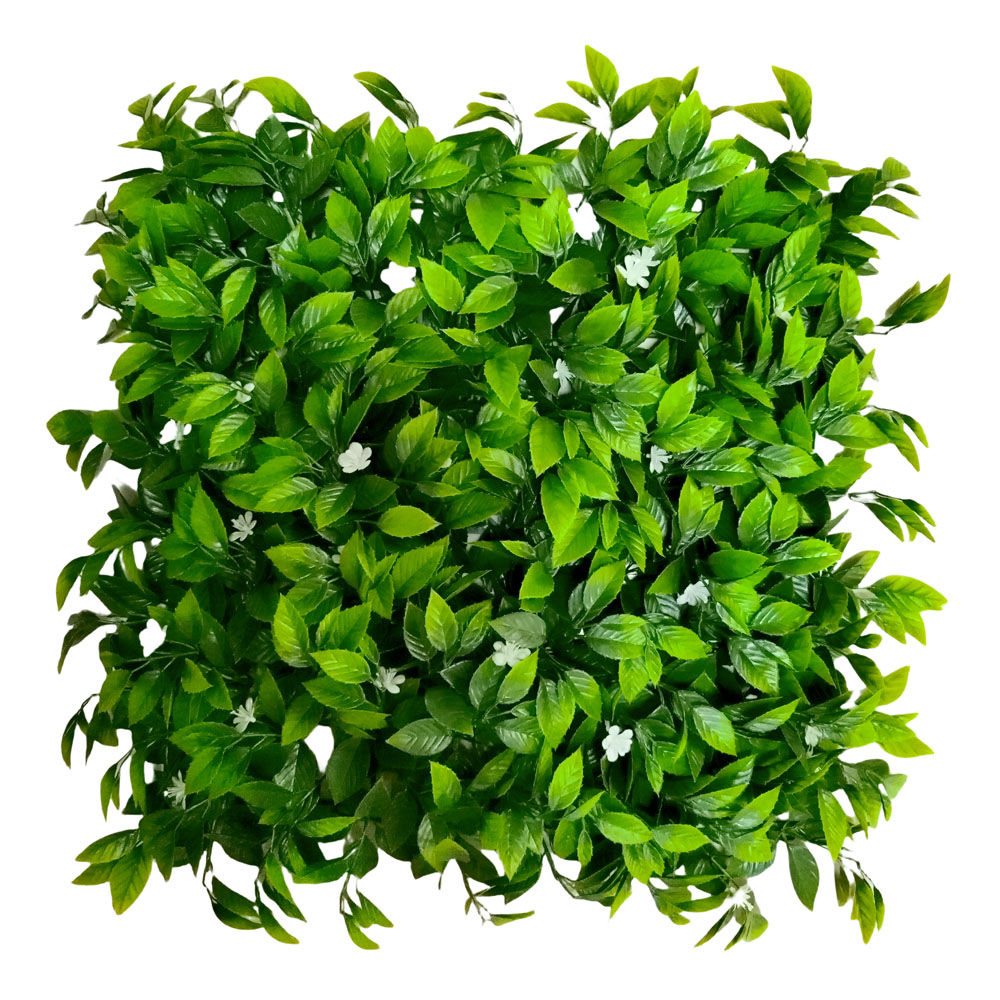 Διακοσμητικό πάνελ φυλλωσιάς από ανθεκτικό πλαστικό με ενσωματωμένη UV προστασία, ιδανικό για χρήση τόσο σε εσωτερικούς όσο και σε εξωτερικούς χώρους. Προσφέρει φυσική εμφάνιση και κάλυψη για τοίχους, κάγκελα ή διαχωριστικά..