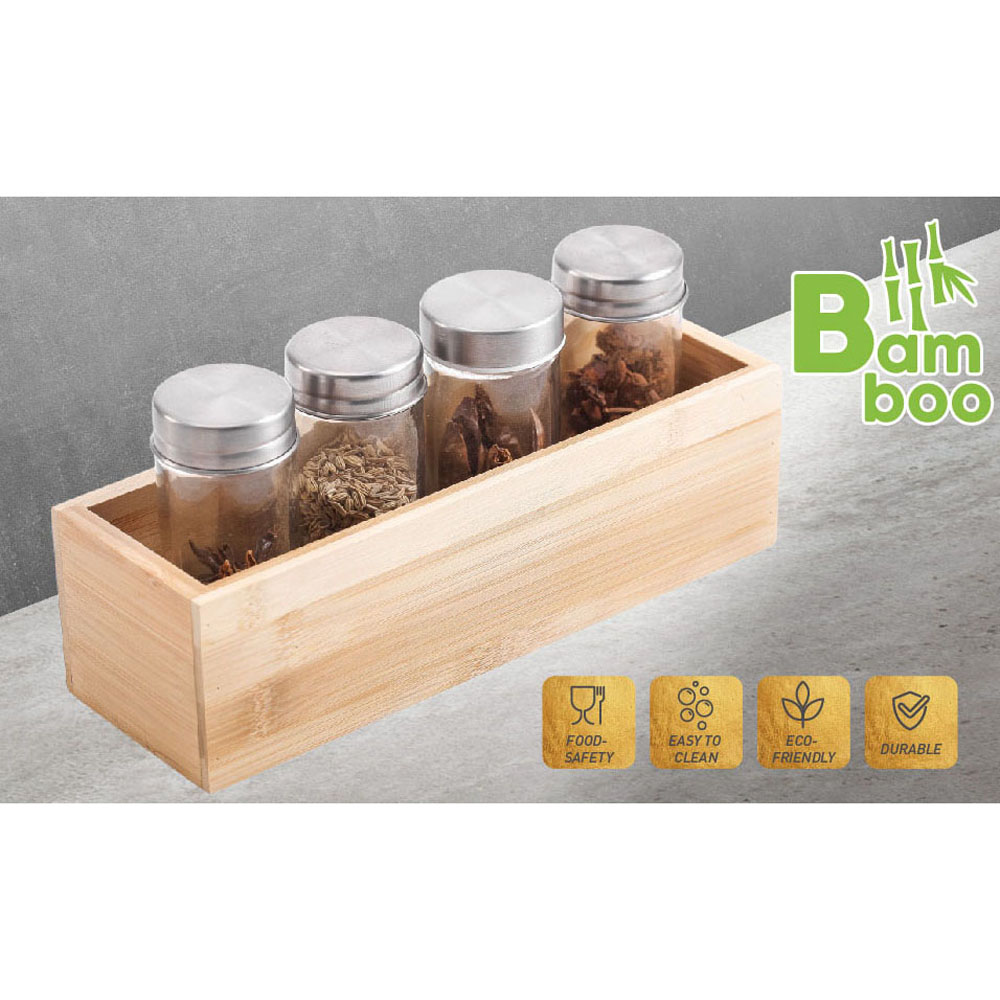 Πρακτικό κουτί αποθήκευσης από bamboo, ιδανικό για την οργάνωση μπαχαρικών, μικροαντικειμένων ή διάφορων αξεσουάρ. Ανθεκτικό, οικολογικό και ασφαλές για επαφή με τρόφιμα....