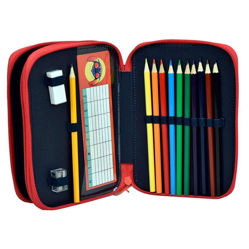 filled pencil case, double tier.