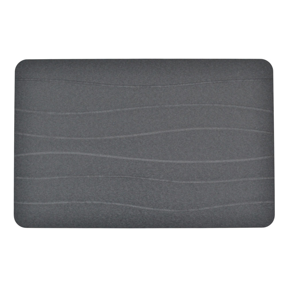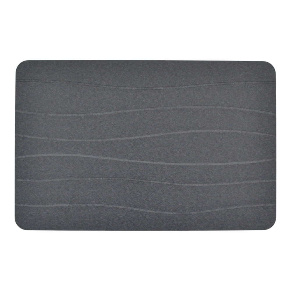 Πατάκι από διατομίτη σε γκρι χρώμα, με ανάγλυφο σχέδιο, το οποίο απορροφά γρήγορα την υγρασία, στεγνώνει άμεσα και είναι αντιολισθητικό. Ιδανικό για το μπάνιο ή την κουζίνα είναι εύκολο στο καθάρισμα και ανθεκτικό στη χρήση.. Ο διατομίτης (diatomite) είναι ένα φυσικό πέτρωμα με απορροφητικές ιδιότητες. Η ιδιαίτερη πορώδης δομή του περιέχει αμέτρητους μικροσκοπικούς πόρους, οι οποίοι απορροφούν το νερό σε δευτερόλεπτα και συγκρατούν το νερό άμεσα, με αποτέλεσμα το πατάκι να στεγνώνει γρήγορα χωρίς να παραμένει υγρασία. Χάρη σε αυτήν τη φυσική ιδιότητα, το χαλάκι διατηρείται καθαρό, δεν αναπτύσσει οσμές και προσφέρει σταθερή, αντιολισθητική επιφάνεια.